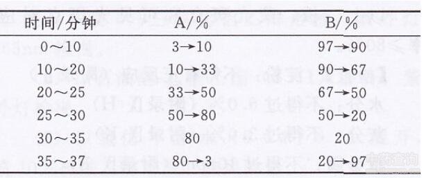 流動相:A-乙腈;B-0.03%磷酸。