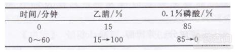 流動(dòng)相:乙腈0.1%磷酸,梯度洗脫